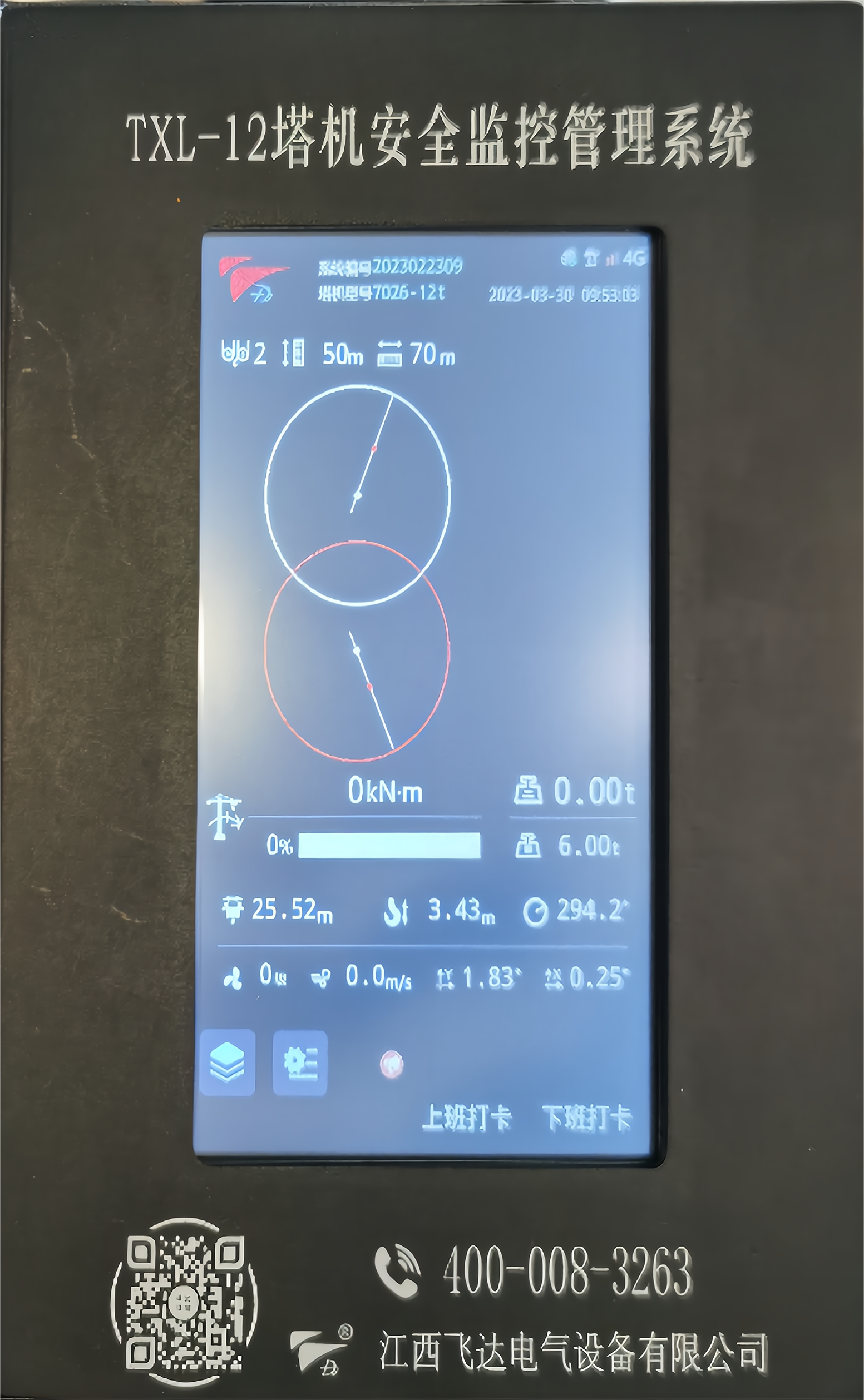3The driver can receive the collision alarm by installing a display instrument in the cab, and check the relative position of the big arm and the car of the adjacent tower crane in real time.